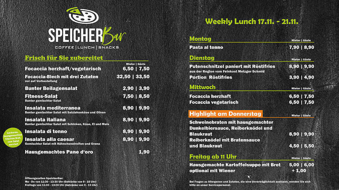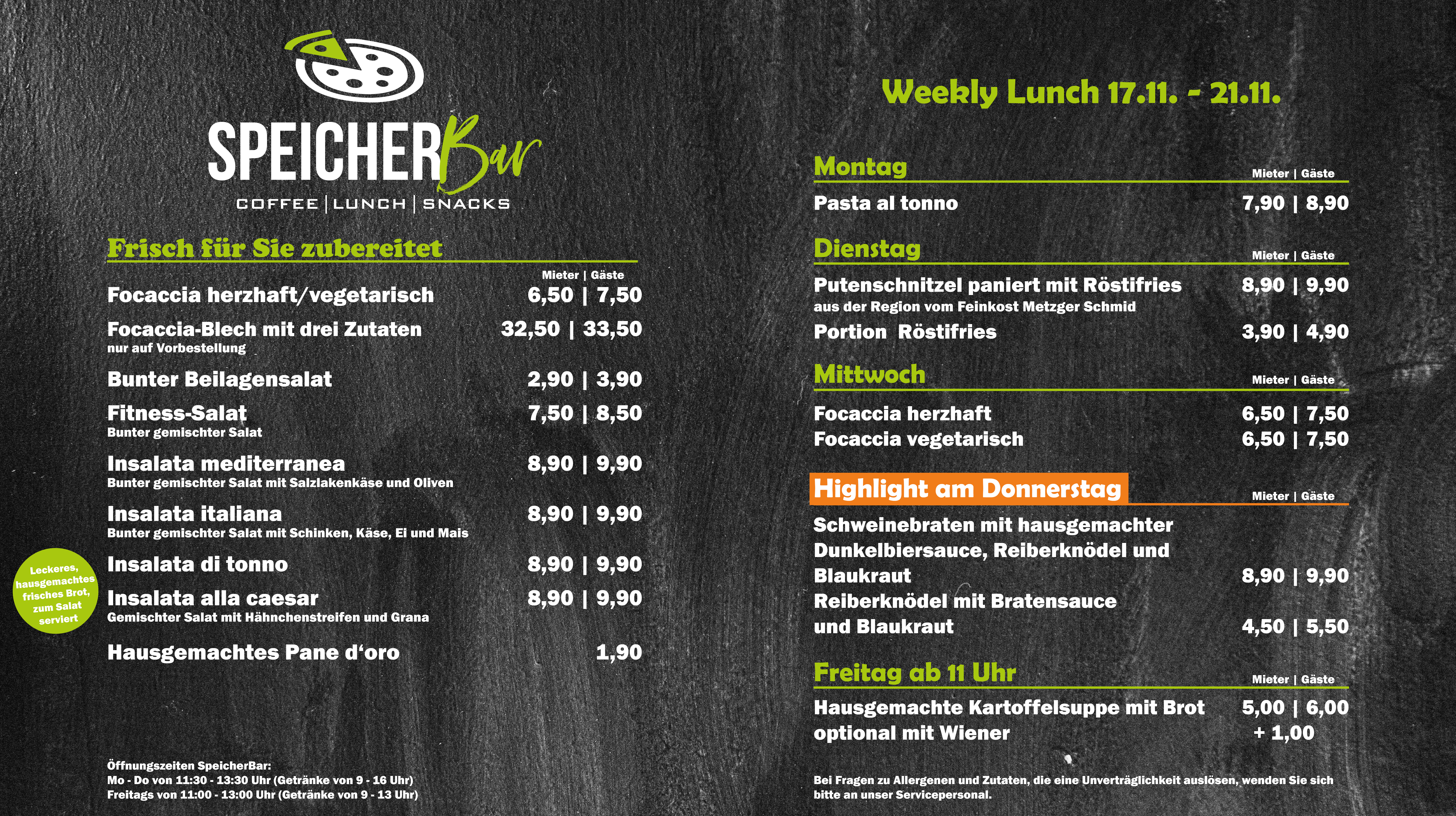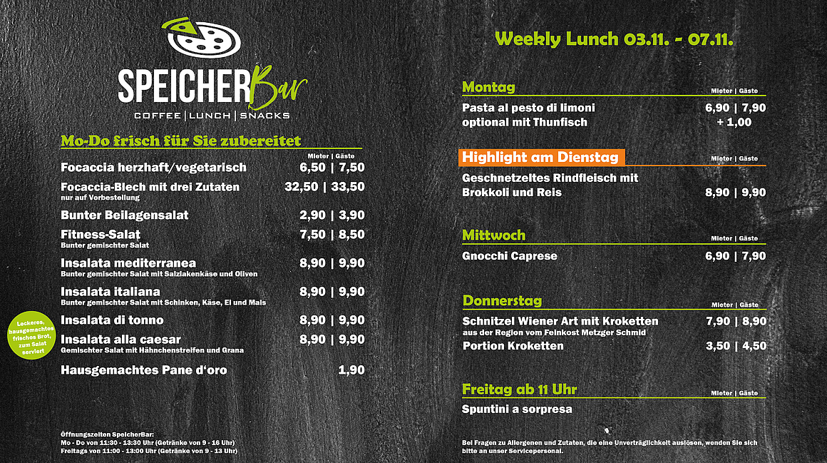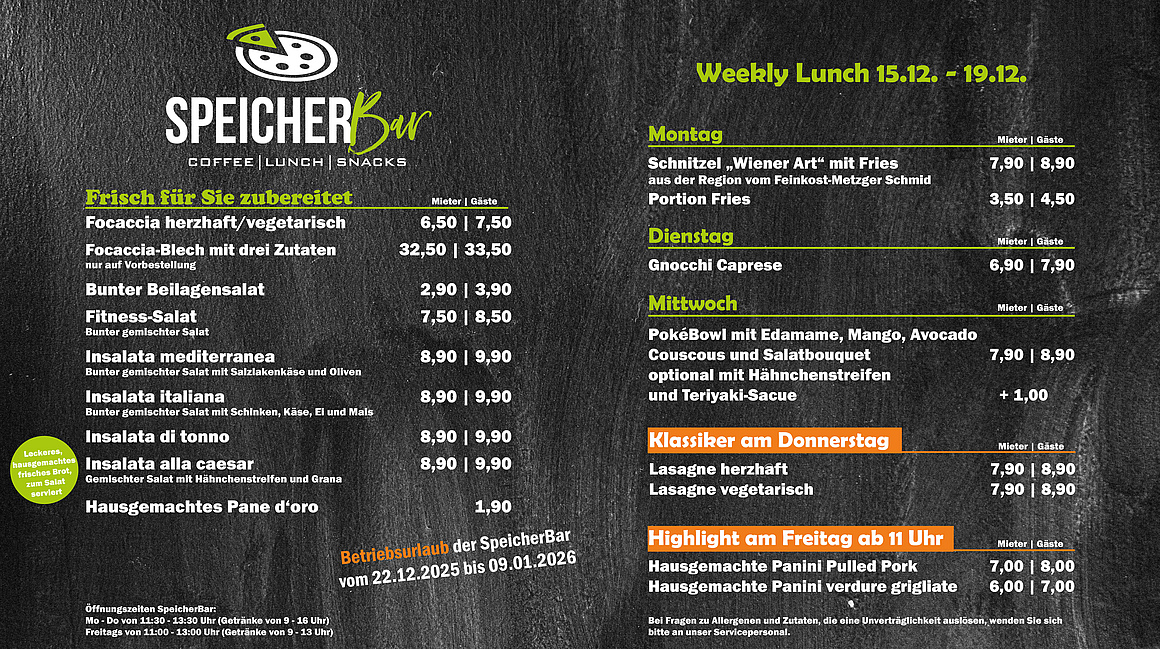 Plant Ihr eine Veranstaltung in der TechBase? Unser reichhaltiges Angebot an erfrischenden Getränken, hausgemachten Gerichten und Kaffeespezialitäten der Rösterei Rehorik runden Veranstaltungen in der TechBase ab. Zur Buchungsanfrage des Getränke- & Cateringangebots der SpeicherBar geht´s hier.