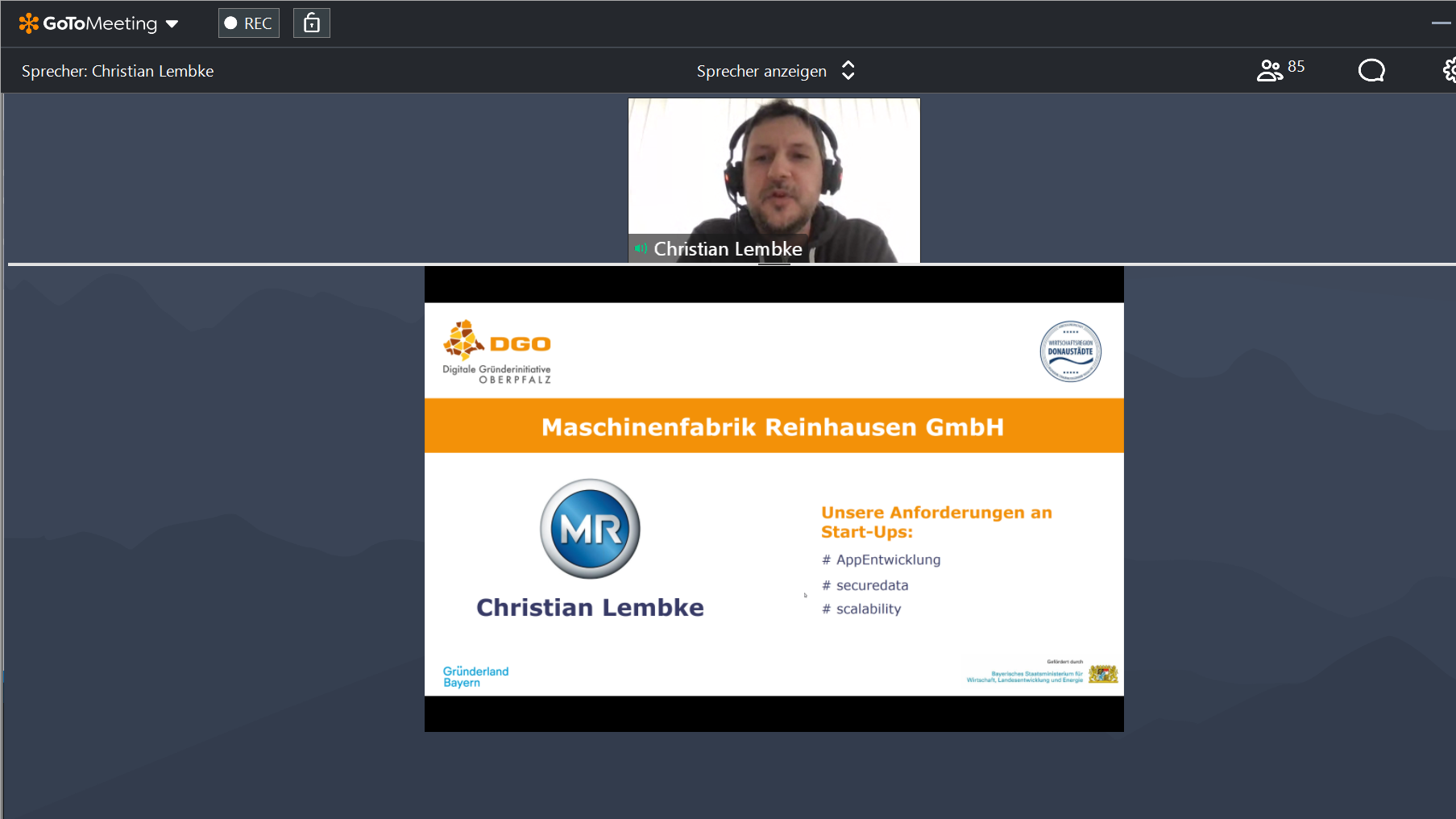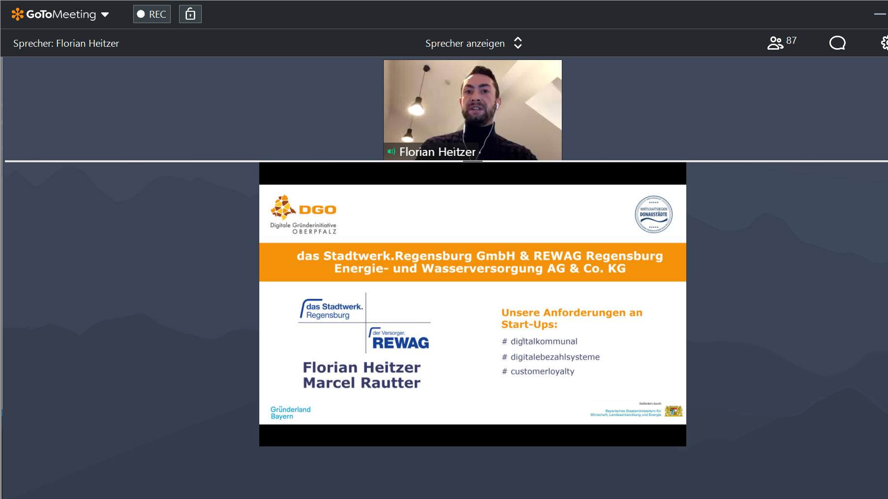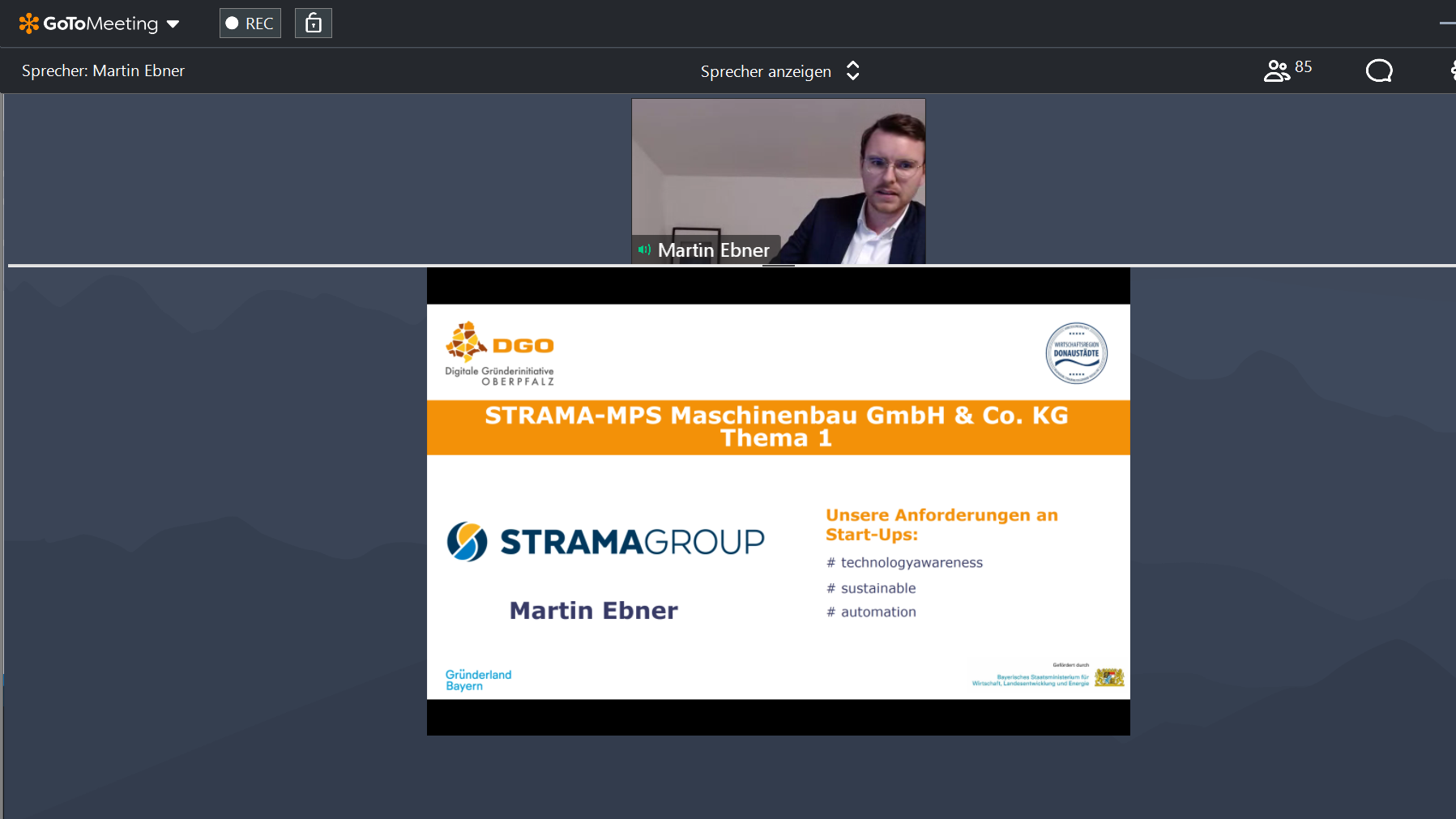 Regensburg, 02.12.2020 - Pitch & Match startete in die zweite Runde. Dieses Mal als Sonderausgabe zusammen mit der ARGE Wirtschaftsregion Donaustädte. Rund 100 Teilnehmer waren bei der gestrigen, rein digitalen Veranstaltung dabei und machten sich ein Bild davon, wie Kooperationen zwischen jungen Start-ups und etablierten Unternehmen aussehen können.