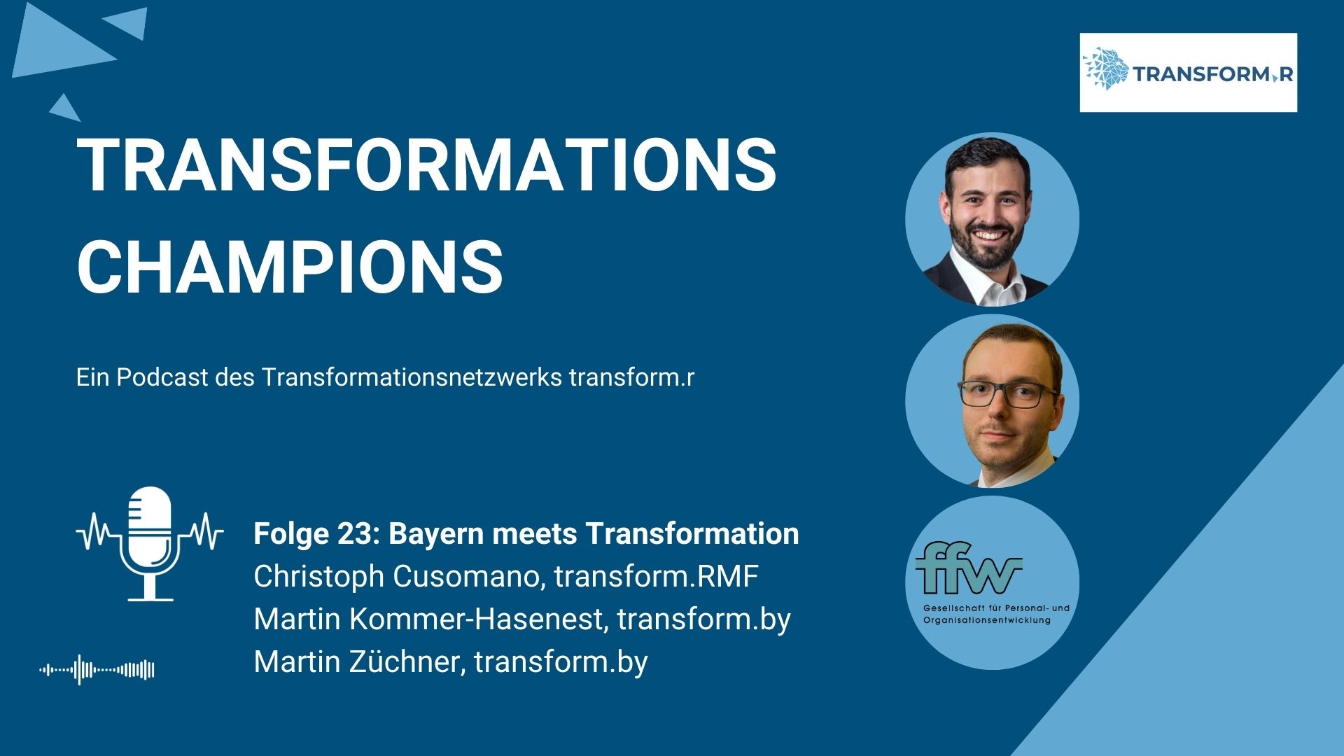 In dieser Sonderfolge von Transformationschampions stehen die bayerischen Transformationsnetzwerke selbst im Mittelpunkt. Die drei Gäste aus Transform.RMF und Transform.by geben Einblicke in über dreieinhalb Jahre Transformationsarbeit und zeigen anhand konkreter Beispiele, wie mittelständische Unternehmen pragmatisch, niederschwellig und gemeinsam Zukunft gestalten. Deutlich wird: Erfolgreiche Transformation verbindet Technologie, Qualifizierung und die aktive Einbindung aller Akteure im Unternehmen.